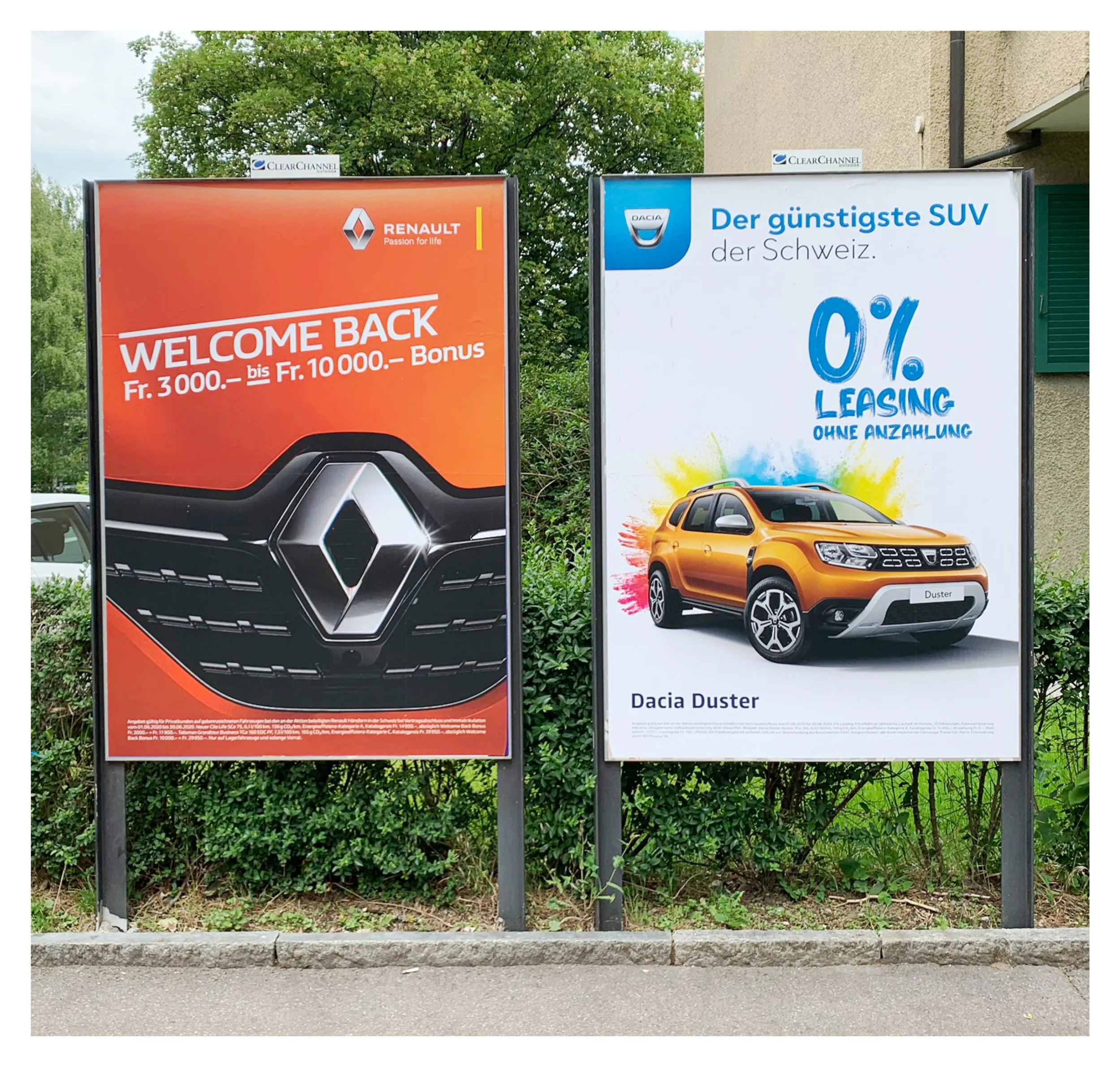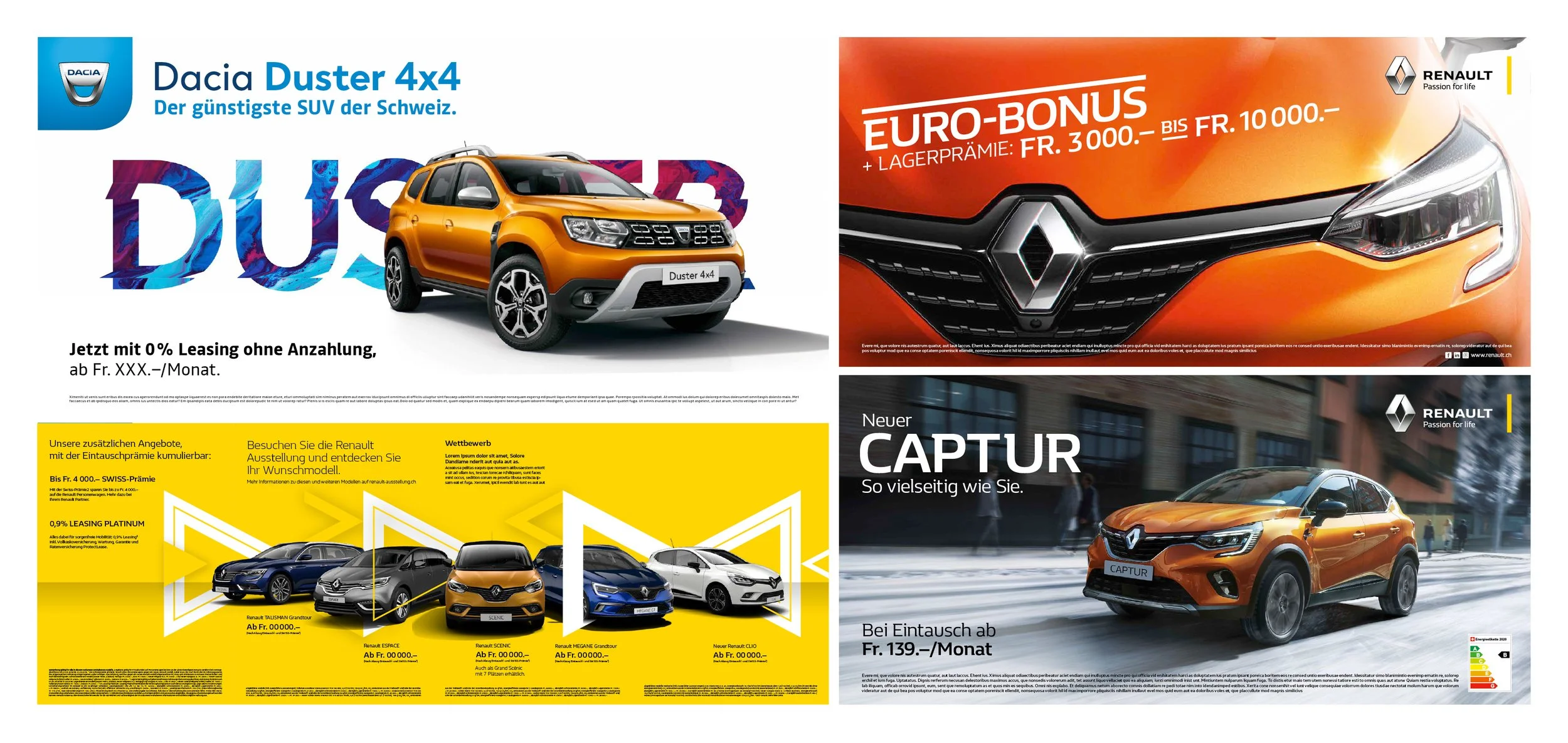Renault/Dacia, Sunrise, Jura, Schweizerische Post, Ricola, Rivella, UBS, Siemens Schweiz